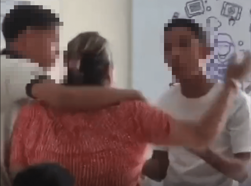 Villa Jaragua, Bahoruco.- Profesores y alumnos del Politécnico Marie Poussepin Fe y Alegría en Villa Jaragua, provincia Bahoruco, aclararon que el forcejeo entre maestra y una alumna se originó cuando la educadora le pidió esperar su turno para la entrega dela merienda escolar a lo que esta se negó, respondiendo de manera violenta, lo que obligó a la docente a sostener por los hombros a la alumna para frenar la agresión.